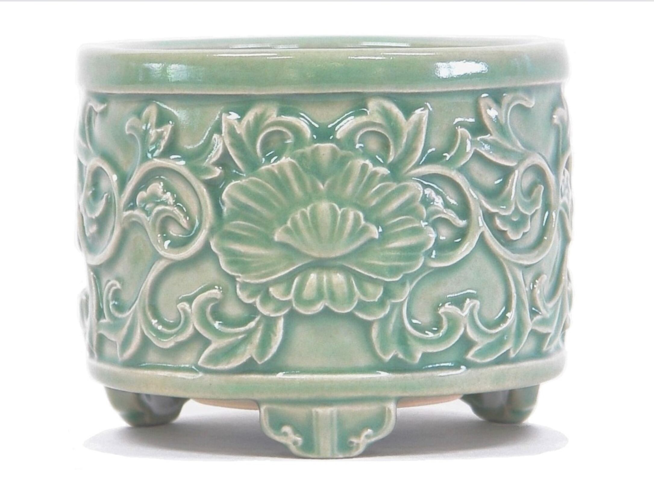 本青磁 天龍寺手 本山型浮絵土香炉 4.8寸 【猫足型】【平足型】