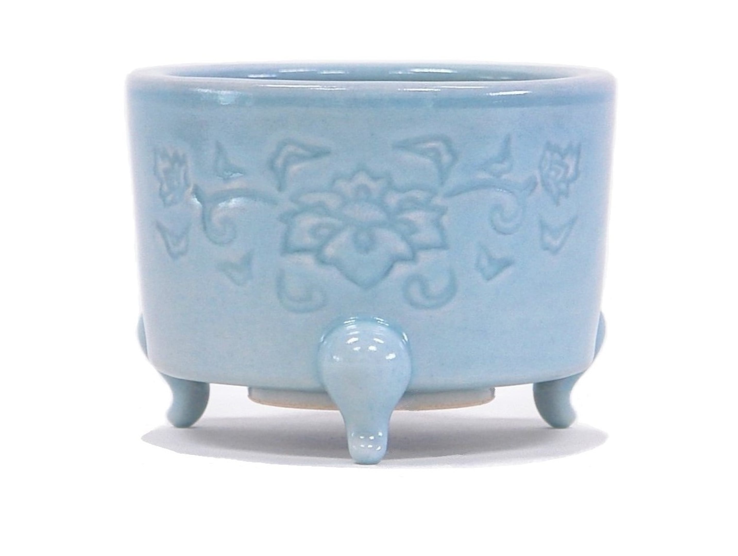 本青磁 七官(七貫)手 宝相華紋土香炉 4寸